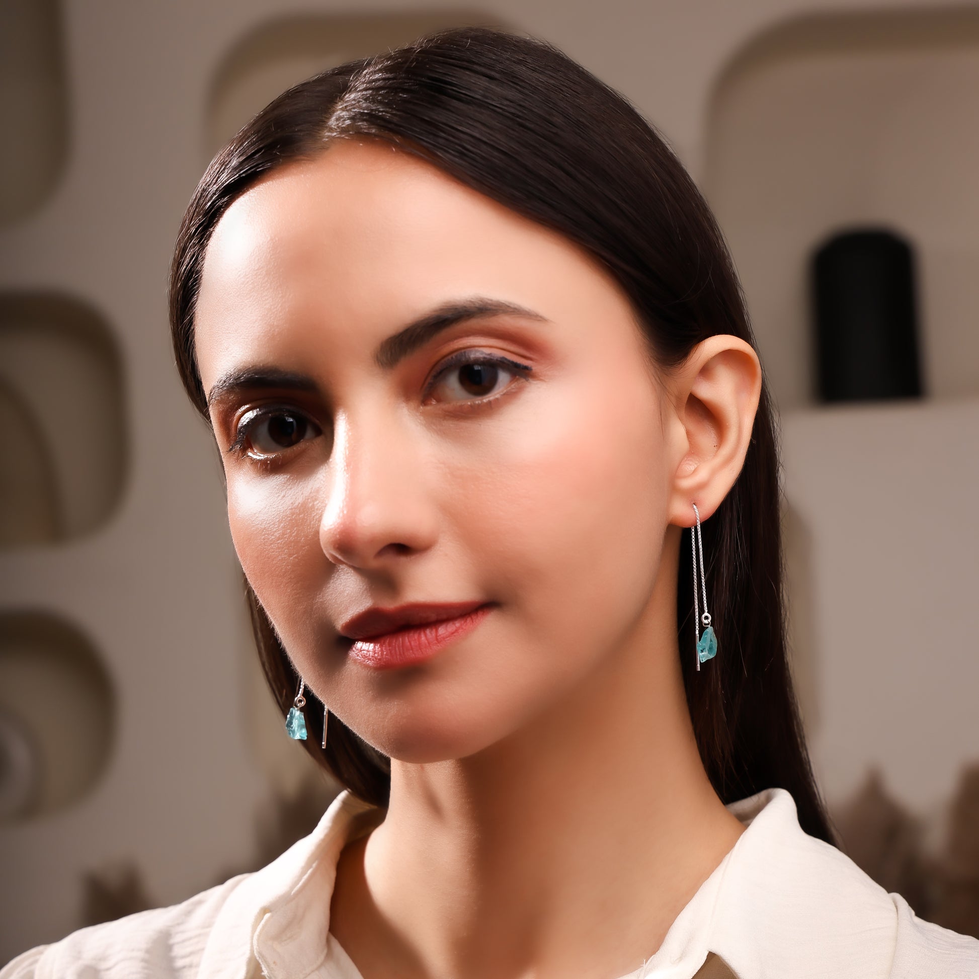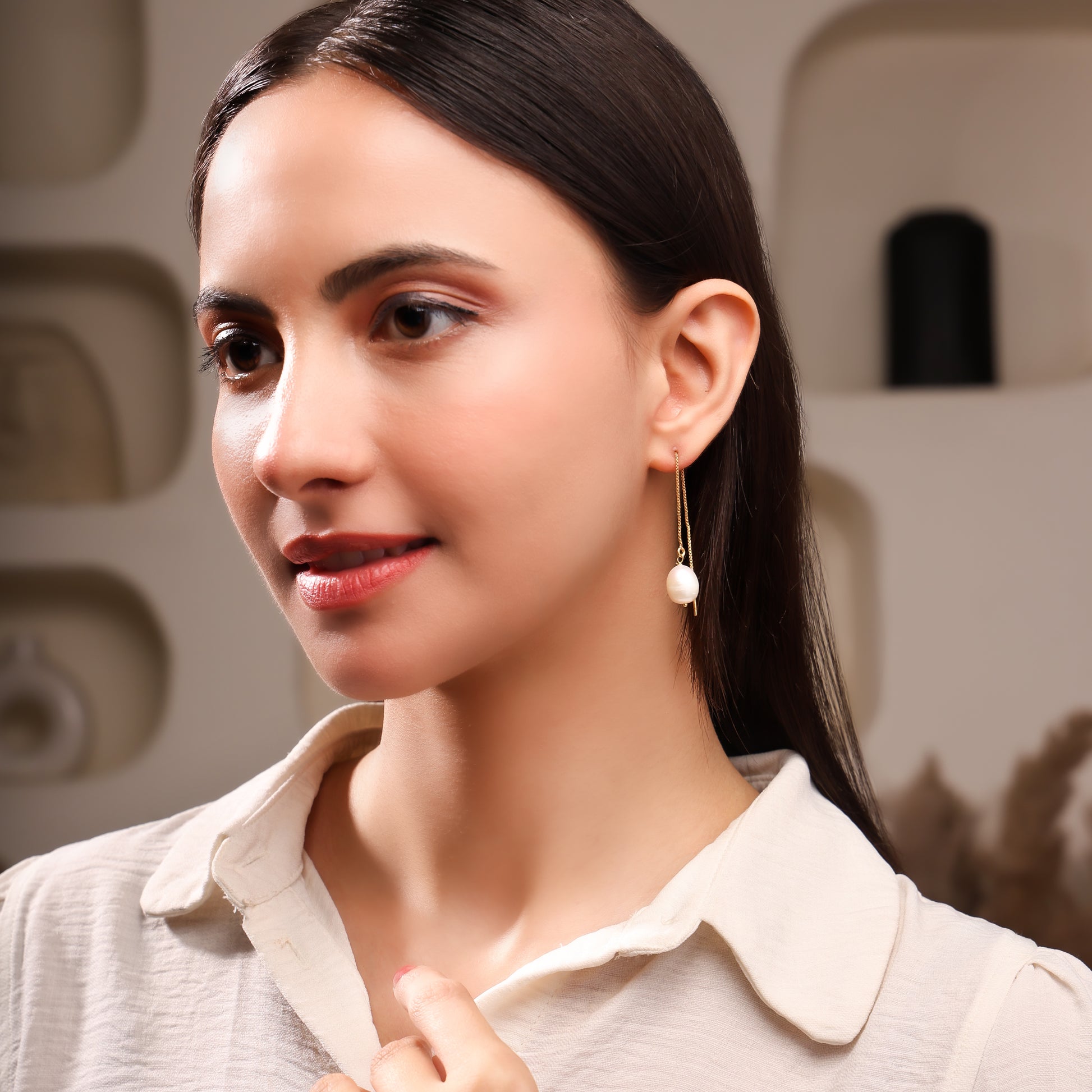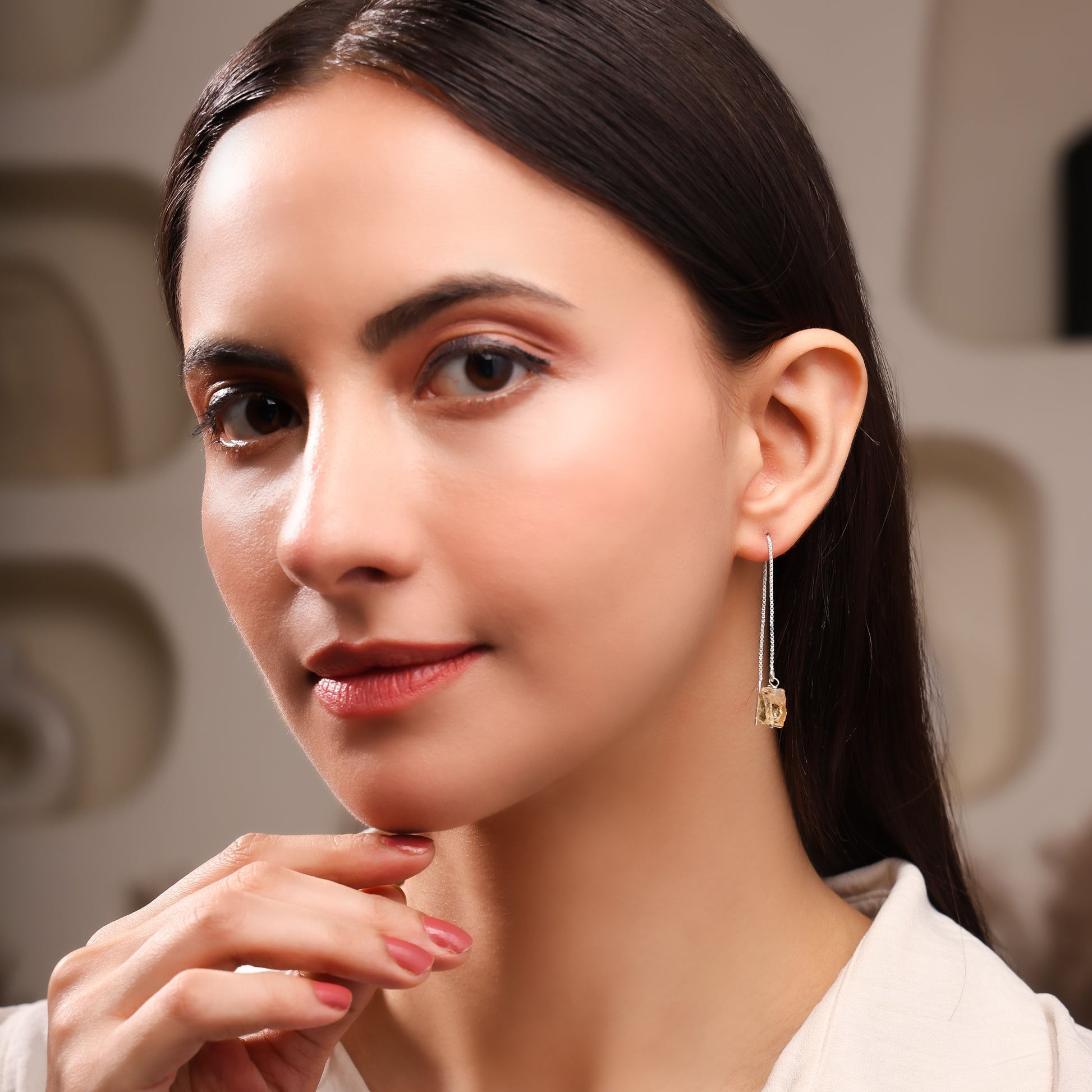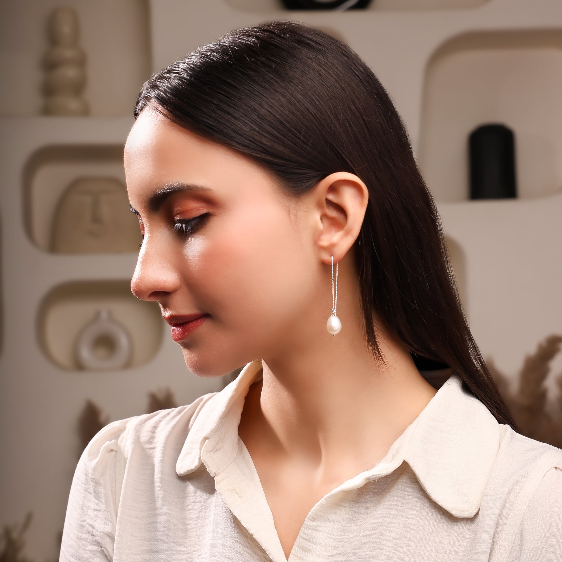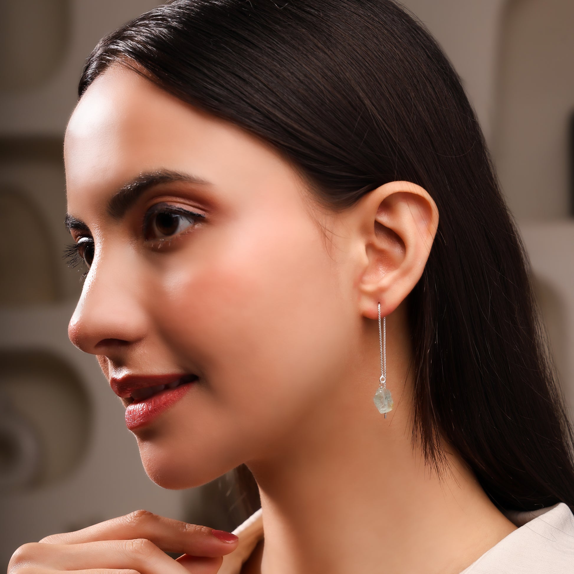 Handcrafted in sterling silver, Elvara is a graceful threader earring defined by its elongated chain silhouette. At the end, a raw Pearl reveals natural elegance, enhanced by meticulous craftsmanship. Designed for timeless sophistication, Elvara embodies quiet luxury and the refined artistry of modern jewellery.